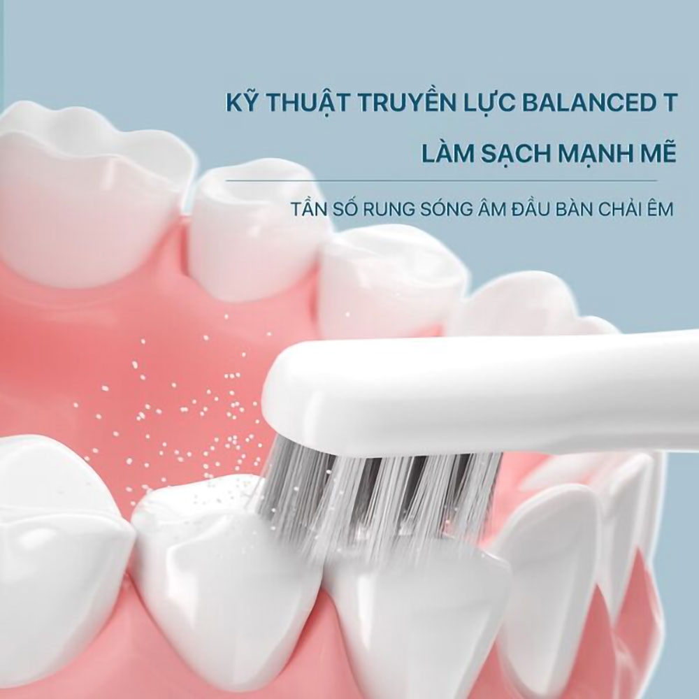 bàn chải Bomidi T501 sử dụng động cơ điện được tối ưu hóa truyền động với tần số rung cao 31000 vòng/phút ở chế độ mạnh giúp làm sạch hiệu quả đến từng kẽ chân răng. Đặc biệt, đầu bàn chải được truyền động rung trực tiếp giúp đưa kem đánh răng vào giữa các khoảng trống của răng, loại bỏ hoàn toàn các vụn thức ăn thừa bám trong kẽ chân răng
