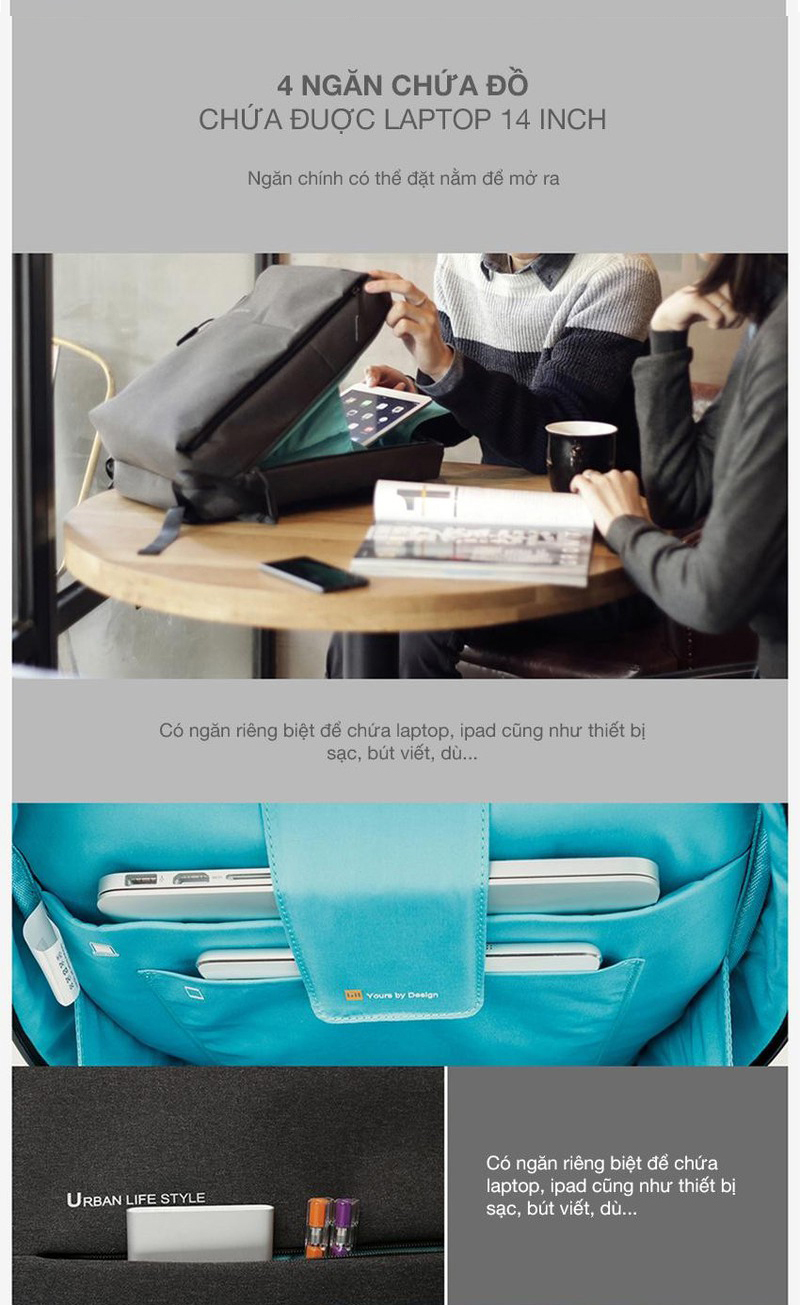Thiết kế 4 ngăn lưu trữ, phù hợp với máy tính xách tay 14 inch