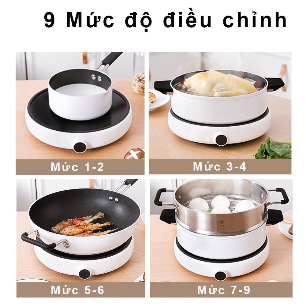 Nâng cấp với khả năng điều chỉnh 9 mức nhiệt khác nhau, thiết kế tinh tế với núm xoay cùng màn hình LED thông minh, nhiều chế độ nấu được thiết lập sẵn, công suất mạnh mẽ đến 2100W, đặc biệt là đầy đủ các chế độ an toàn,... Bếp điện từ Zhiwuzhu ZCL010-1A một gợi ý hoàn hảo cho căn bếp của mọi gia đình