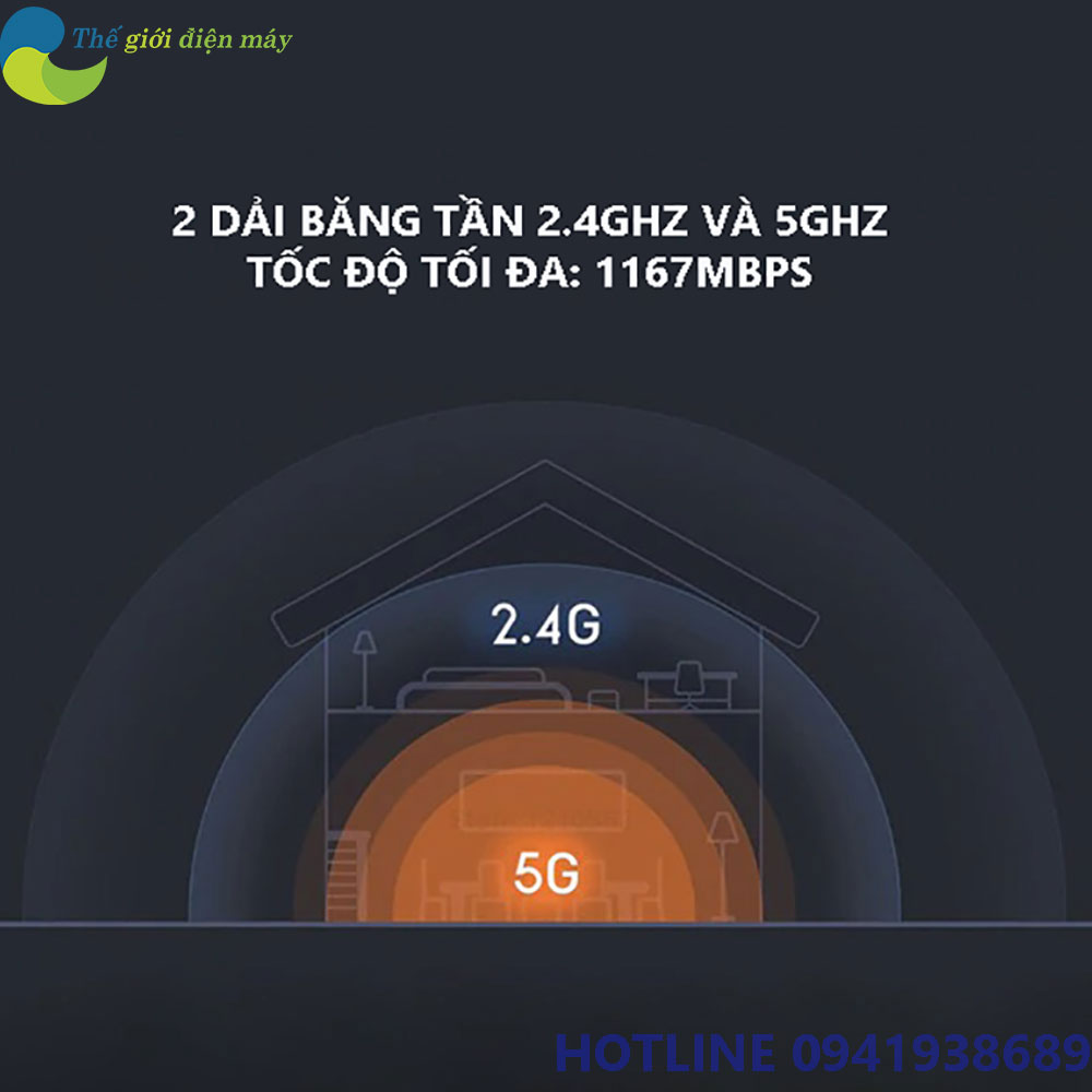 Dải băng tần 2.4Ghz giao thức IEEE 802.11N, tốc độ 300 Mbps cho tầm phủ sóng rộng hơn, khả năng truyền tải xa hơn, xuyên vật cản tốt hơn. Đối với dải băng tần 5Ghz giao thức IEEE 802.11AC, tốc độ cao 867 Mbps, hạn chế nhiễu sóng, xem video 4K, chơi game online mượt mà, download và upload video nhanh.
