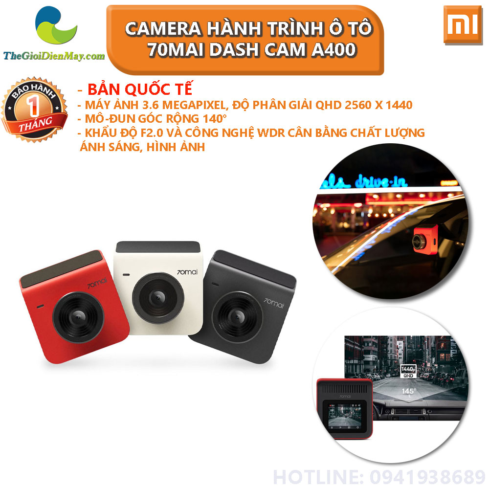 Xiaomi 70mai A400 Dash Cam cho khả năng quay video ở độ phân giải QHD 2560 x 1440, đảm bảo chất lượng hình ảnh với màu sắc rõ ràng và chính xác. Mô-đun góc rộng 140 ° FOV siêu rộng giúp bạn có thể bao quát được toàn cảnh phía trước của xe, bạn sẽ có được nhiều sự kiện hơn trong mỗi khung hình. Màn hình IPS 2 inch hiển thị cảnh quay trong thời gian thực, cho phép bạn kiểm tra trạng thái ghi khi đang lái xe.