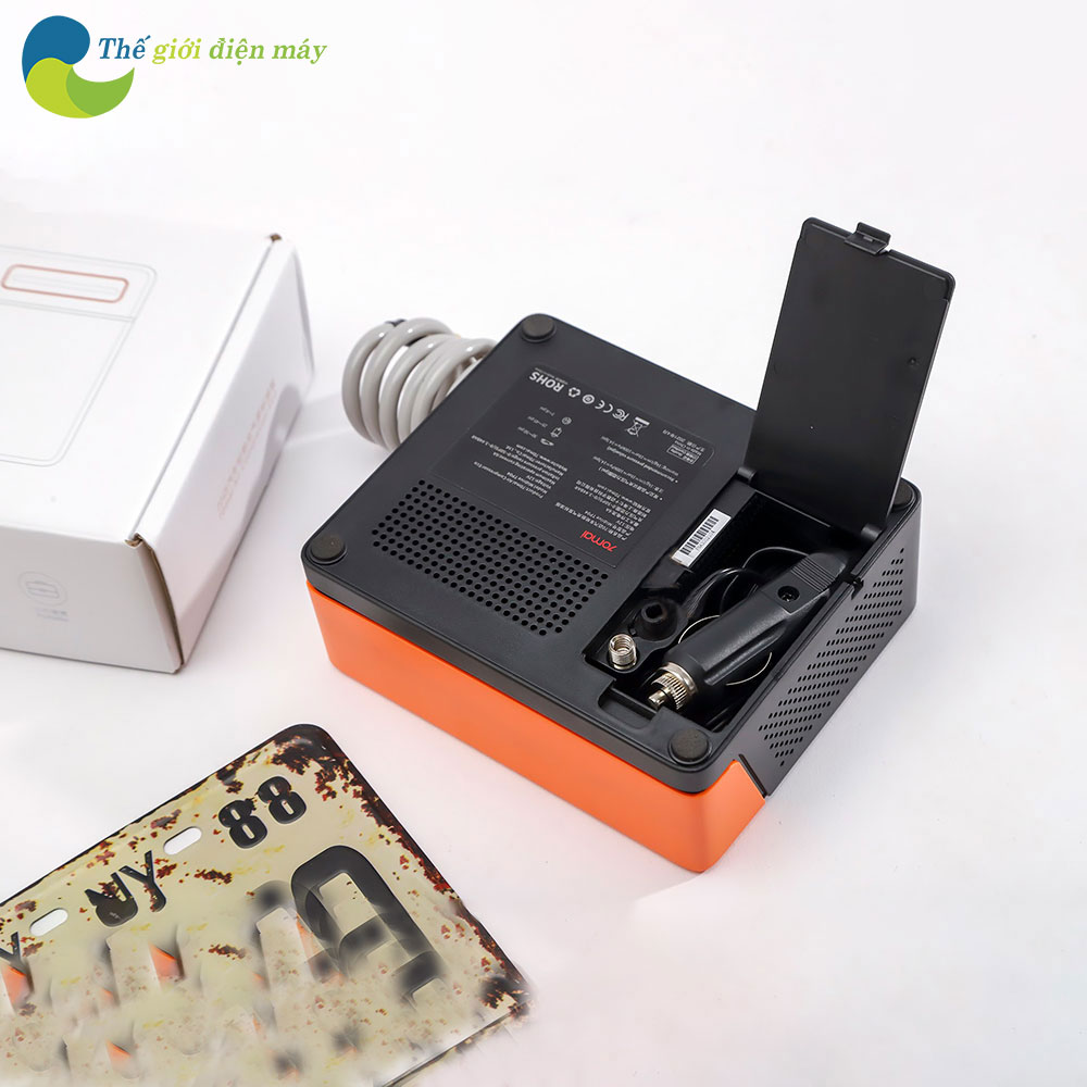 Máy bơm lốp xe ô tô 70MAI sở hữu ngoại hình nhỏ gọn với kích thước 150 x 120 x 55mm, tương đương với 1 chiếc smartphone, vì vậy không chiếm quá nhiều diện tích trên xe ô tô của bạn. Máy sở hữu thiết kế tối giản với kết hợp màu sắc đẹp mắt giữa đen và cam. Chất liệu bề mặt máy được phủ lớp sơn mờ sang trọng. Bên cạnh đó máy bơm lốp xe được tích hợp bảng hiển thị tuyến tính dễ dàng theo dõi trong quá trình bơm. Đặc biệt máy bơm lốp ô tô còn thiết kế hộp lưu trữ có khả năng tích hợp dây nguồn bên dưới máy khá tiện lợi.