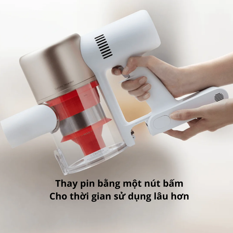 Máy hút bụi Mi Vacuum Cleaner G9 Plus của nhà Xiaomi khá được ưu ái khi trang bị viên pin dung lượng lớn, với mức năng lượng lên đến 2500mAh. Điều này cho phép máy có thể hoạt động liên tục lên đến 60 phút. Thời lượng pin dài vừa đủ để làm sạch toàn bộ ngôi nhà lớn mà không cần sạc lại. Ngoài ra, máy còn có thiết kế pin tháo rời, giúp bạn thay pin chỉ bằng một nút bấm vô cùng tiện lợi.