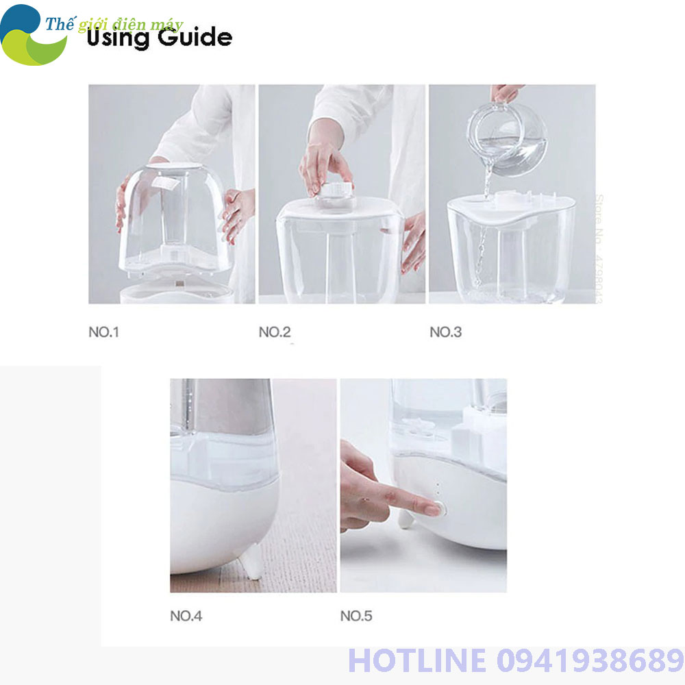 Chú ý: Sản phẩm không dùng được tinh dầu ( quý khách vui lòng lưu ý không được bỏ tinh dầu trực tiếp vào nước, sẽ làm hư đầu phun và không được bảo hành )