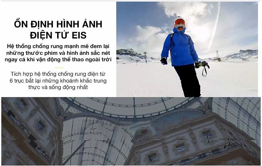 Tích hợp hệ thống chống rung điện tử 6 trục để giảm các rung động khi hoạt động thể thao hoặc di chuyển trên đường.