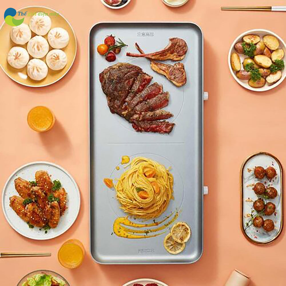 Mijia MDCLD01ACM sở hữu thiết kế bếp từ đôi với cả hai mặt đều có thể kiểm soát nhiệt độ một cách độc lập, đáp ứng nhiều nhu cầu nấu nướng khác nhau, bao gồm món chiên, đồ nướng, nấu canh,... Bên cạnh đó, nhà sản xuất còn trang bị kèm theo khay nướng đặc biệt với kích thước lớn 63cm, hỗ trợ người dùng “hô biến” thành một quầy bếp gia đình để thoải mái tận hưởng những bữa tiệc ấm cúng cùng người thân và bạn bè. Tuy nhiên, phụ kiện khay nướng này cần phải được mua thêm.