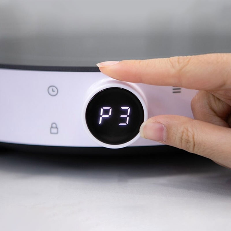 2. Nút điều khiển núm xoay để tăng (+) / giảm (-) mức cài đặt nhiệt độ: Có tổng cộng 9 mức, từ P1 đến P9.