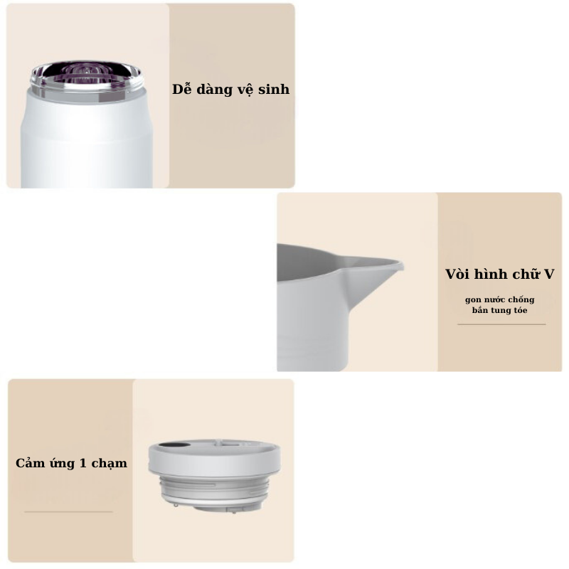 Thiết kế đổ nước hình V giúp đổ nước chính xác và mượt mà, không tràn ra ngoài, ngăn chặn lãng phí nước và giữ cho bàn làm việc sạch sẽ.