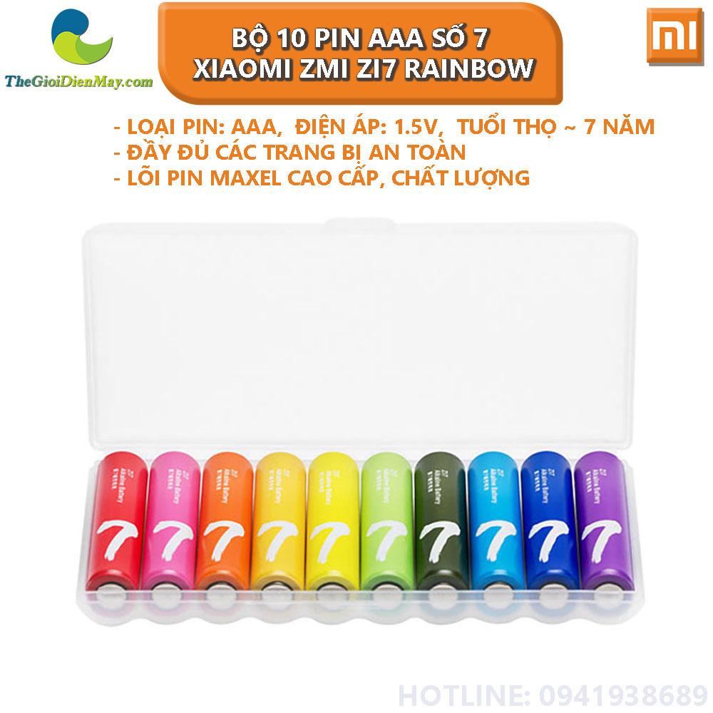 Bộ 10 pin AAA số 7 Xiaomi ZMI ZI7 Rainbow là một trang bị hợp lý giúp cung cấp năng lượng cho mọi thiết bị từ remote, chuột không dây, đèn pin, đồ chơi trẻ em,…với chất lượng tốt và độ bền cực kì cao.