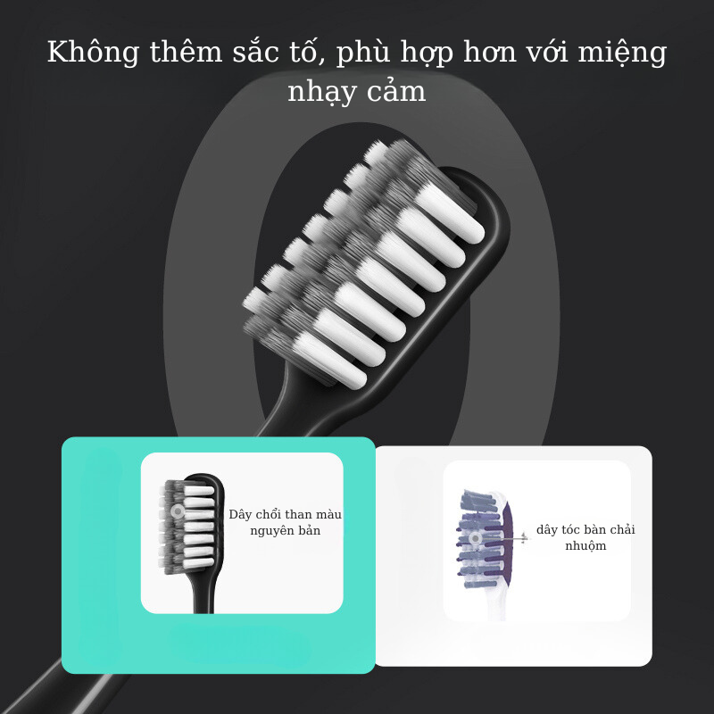 Lông chải được bố trí với 2 vùng làm sạch. Cụ thể vùng lông trắng kháng khuẩn ion bạc, mềm nhưng không bết, bố trí chắc chắn không rụng cho hiệu quả massage và làm sạch nướu tốt hơn. Lông xám siêu mịn binchotan làm sạch sâu kẽ răng, hấp thụ mùi hôi, nhanh khô và giảm vi khuẩn phát triển trên bàn chải.