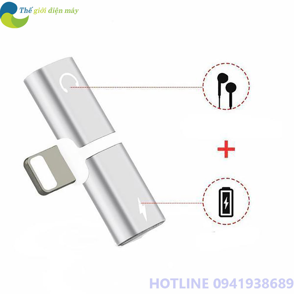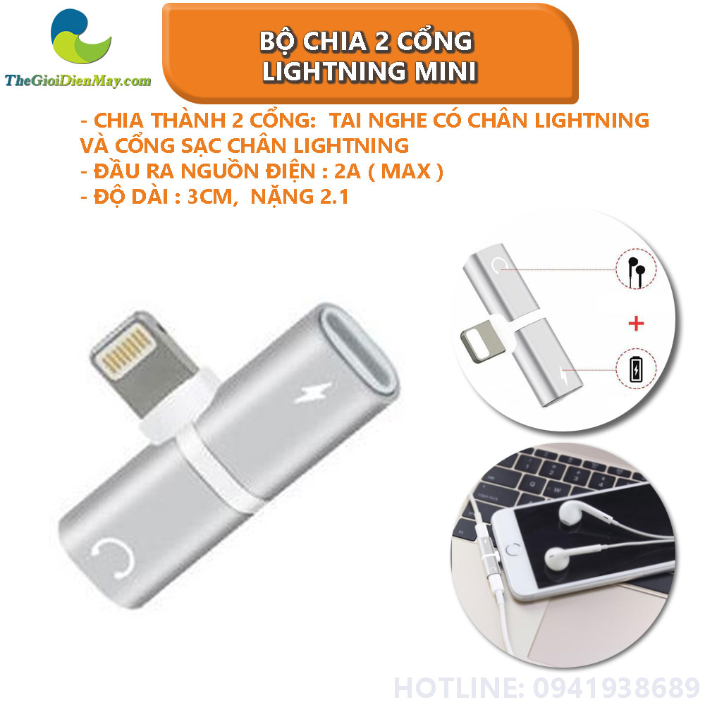 Là bộ chuyển đổi 2 cổng : Tai nghe có chân Lightning và Cổng sạc chân Lighting dùng chung một lúc