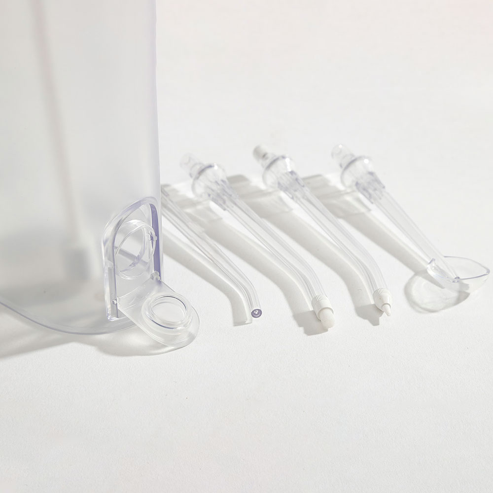 3. Loại vòi phun làm sạch túi nha chu Khi sử dụng vòi phun này, máy nên được để ở mức phun thấp nhát, đặt góc 45 độ đến đường nướu. Đặt đầu mềm của vòi phun vào túi nha chu và bật máy.