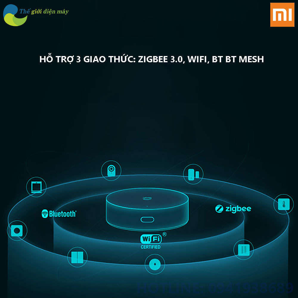 - Hỗ trợ 3 giao thức: ZigBee 3.0, WiFi, BT BT Mesh