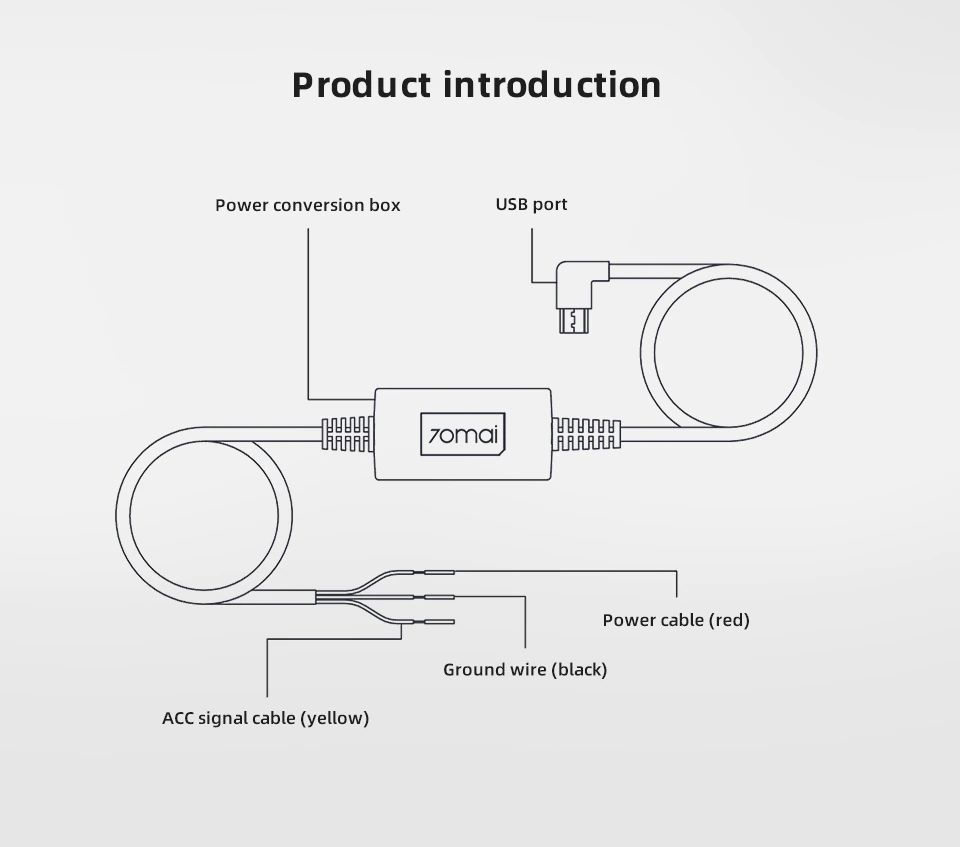 Nguồn điện đấu qua 70mai Hardwire kit điện sẽ được chuyển đổi từ 12V xuống 5V-1.2A, với nhiệm vụ nuôi pin của camera giúp camera hoạt động chế độ trông xe ” đỗ xe Parking ” khi có va chạm phía đầu xe khi tắt máy.