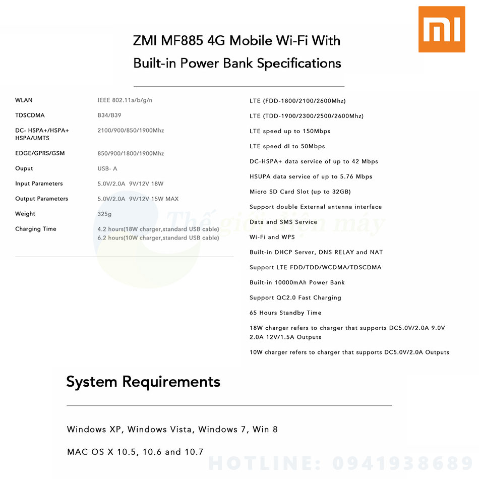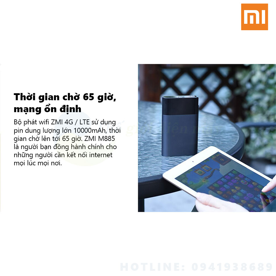 Thông tin sản phẩm bộ phát wifi di động kiêm sạc dự phòng Xiaomi ZMI MF885: