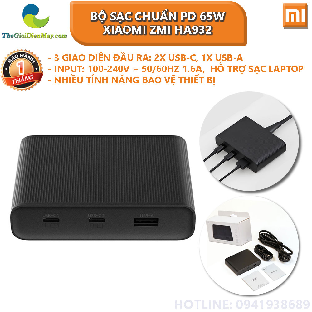 Thương hiệu ZMI vốn nổi tiếng trong việc sản xuất các loại phụ kiện điện thoại chất lượng. Mới đây thương hiệu này vừa cho ra mắt một bộ sạc mới vừa sạc được cho smartphone vừa cho khả năng sạc được các loại máy tính xách tay. Với thiết kế gọn nhẹ di động, đa đầu ra và công suất cao, hỗ trợ sạc nhanh,... Bộ sạc chuẩn PD Xiaomi ZMI HA932 65W sẽ là sự lựa chọn tuyệt vời dành cho bạn.