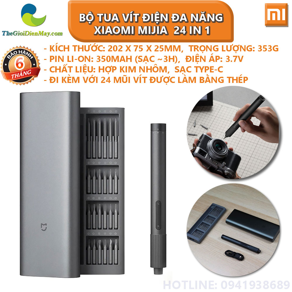 Bộ tua vít điện đa năng Xiaomi Mijia MJDDLSD003QW mới của Mijia đi kèm với 24 mũi vít được làm bằng thép, gấp đôi lượng đầu tua vít so với tua vít điện Mijia được ra mắt vào hồi năm ngoái.