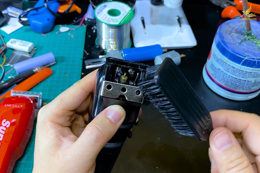 - Sau khi cắt tóc xong, hãy dùng chổi phủi sạch tóc trên lưỡi.