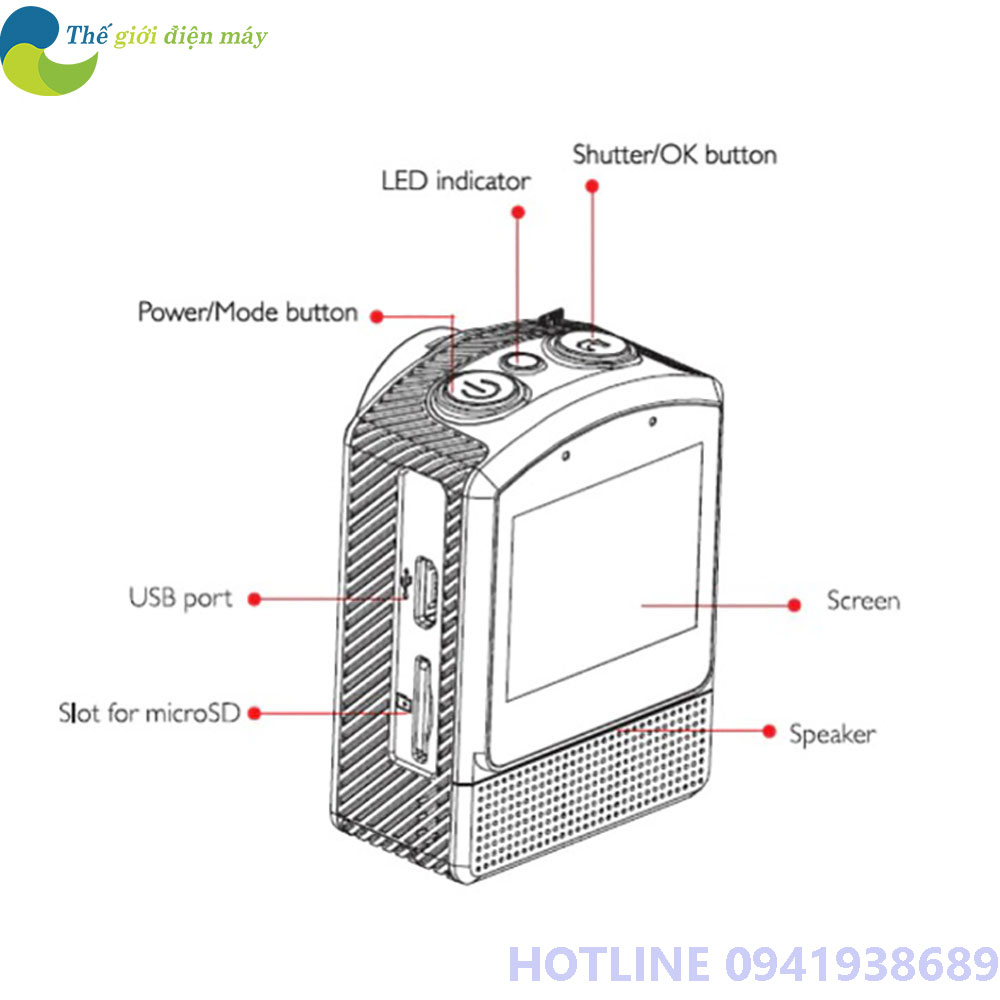 - Kích thước màn hình: + Trước: không + Sau: 1.5 inch LCD