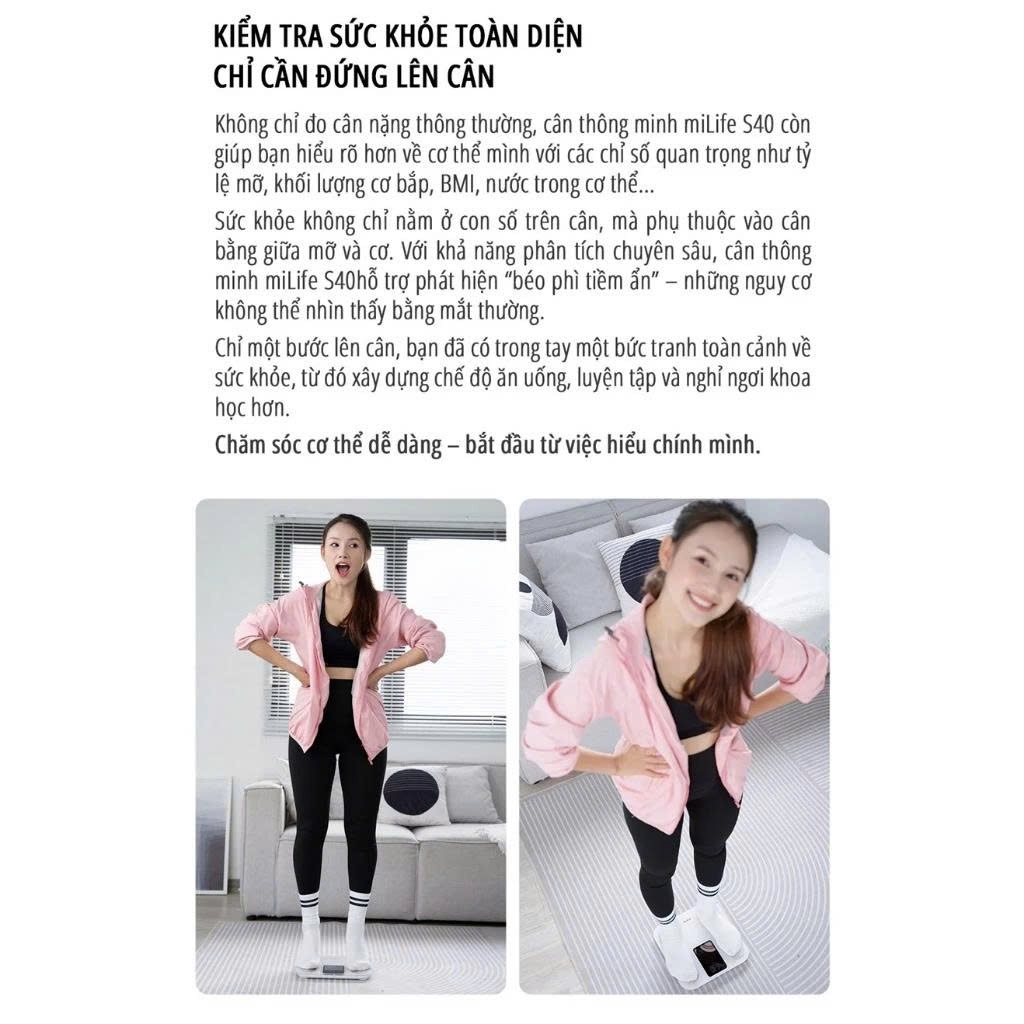 Cân thông minh Body Fat Milife S40 đo 23 chỉ số, kết nối app Mihome - Bảo hành 3 tháng