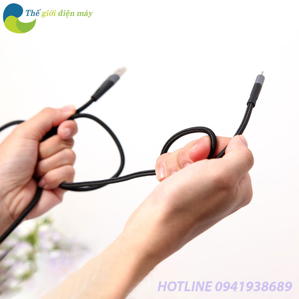 Nhà sản xuất còn tinh tế trang bị dây dán và miếng cố định đa năng, cho phép người dùng dễ dàng cuốn dây lại khi không sử dụng, hạn chế tình trạng bị thắt nút hoặc rối dây thường gặp, đồng thời cho phép người dùng dễ dàng lưu trữ và đem theo sử dụng mọi lúc mọi nơi. Phần tay cầm của cáp được làm từ chất liệu hợp kim nhôm cao cấp, thông qua lớp phủ sơn anodized đem lại bề mặt mịn lì, cho cảm giác cầm thích tay. Đồng thời quá trình này giúp sản phẩm không bị oxy hóa hoặc bong tróc, nâng cao tuổi thọ cho sản phẩm.