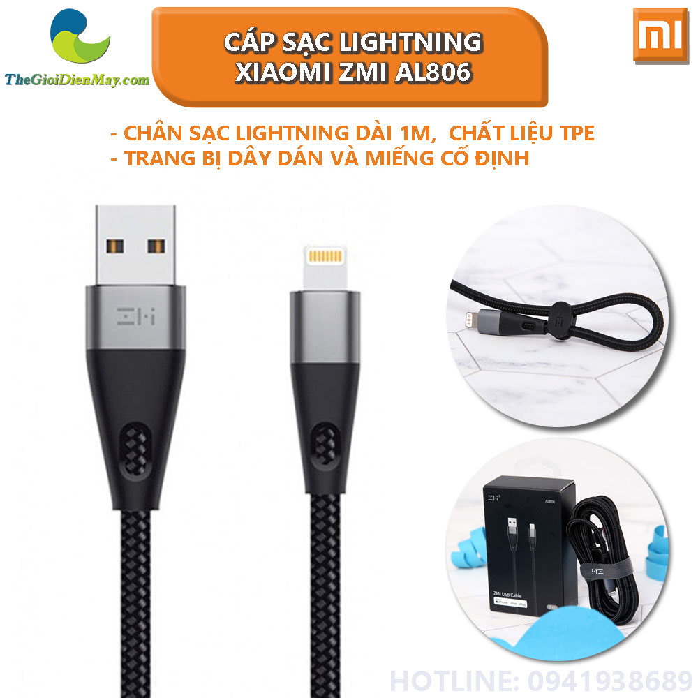 Cáp sạc Lightning Xiaomi ZMI AL806 (chuẩn MFI) 1M đạt chứng nhận chính thức của MFi là sản phẩm đáng tin cậy để sạc các thiết bị iOS với giao diện Lightning như iPhone, iPad..