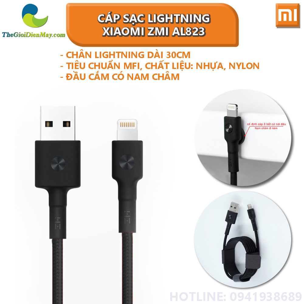 Cáp sạc lightning Xiaomi ZMI AL823 (30cm), cũng là loại dây được bọc Nylon bên ngoài, ngoài chức năng thẩm mỹ và giúp cho sợi cáp trông cao cấp sang trọng hơn. Chi tiết này còn giúp tăng độ bền cho dây cáp, giúp hạn chế tình trạng đứt, gãy cáp, rối dây vẫn thường xuyên xãy ra trên các sản phẩm cáp dùng dây nhựa tròn truyền thống. Độ dài của dây cáp cũng ở mức trung bình, với độ dài tiêu chuẩn là 1m. Nó không quá dài để gây cảm giác vướng víu, nhưng cũng không quá ngắn để khiến bạn cảm thấy bất tiện trong quá trình sử dụng hàng ngày. Tuy nhiên nếu cần một độ dài ngắn hơn, bạn vẫn có thể lựa chọn phiên bản AL823 với độ dài chỉ 30cm.