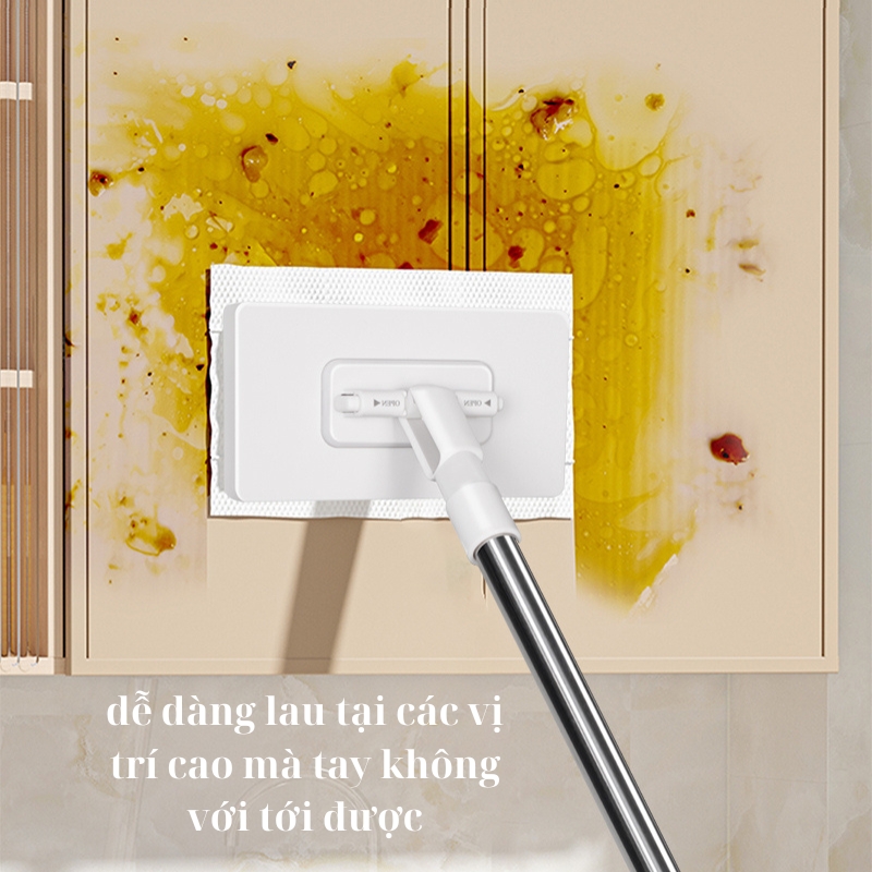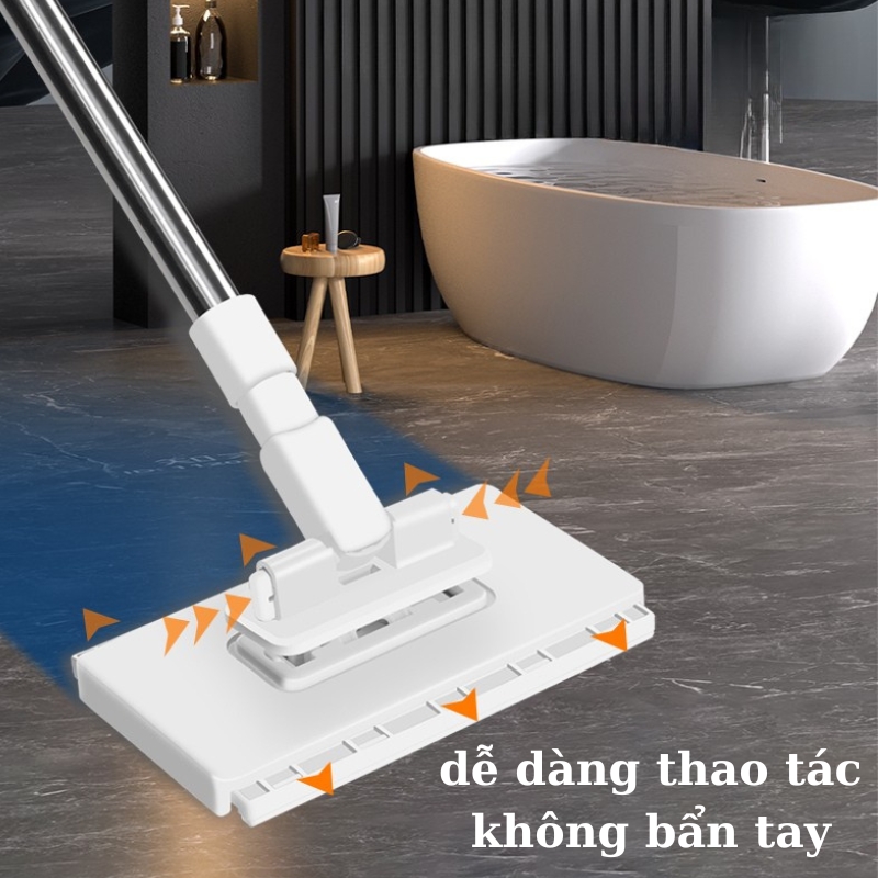 🔹 Linh hoạt – Đầu chổi xoay 360 độ len lỏi mọi ngóc ngách: gầm bàn, khe tủ, bệ toilet, hay cả tường cao.