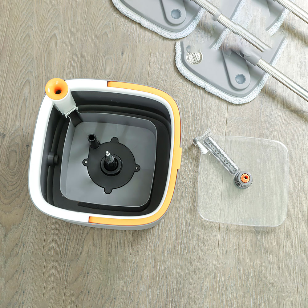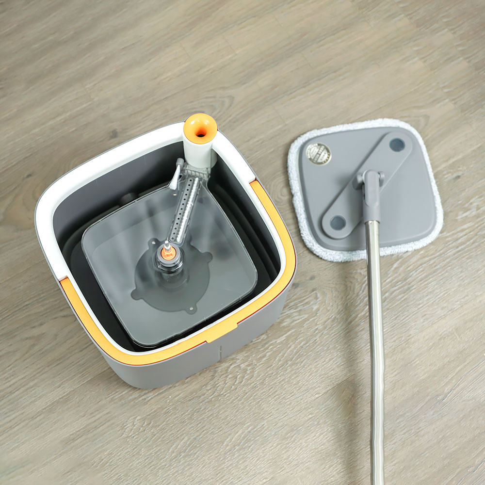 cây lau nhà tự vắt 2 ngăn Joybos M16 sử dụng cơ chế bơm phun nước để làm sạch khăn lau và đồng thời sử dụng lực ly tâm khi quay để tự động vắt khô khăn lau và tách nước bẩn ra ngăn bên ngoài. Thiết kế 2 bể nước bẩn và nước sạch riêng biệt giúp khăn lau luôn được ở trạng thái sạch sẽ, để tăng hiệu quả làm sạch lên gấp 10 lần so với các loại chổi lau nhà thông thường. Sau khi làm sạch, nước thải có thể được thải ra từ lỗ ở phần dưới của xi lanh mà người dùng không cần phải nghiêng thùng để đổ nước thải ra ngoài, tiết kiệm thời gian và sức lức cho người dùng.