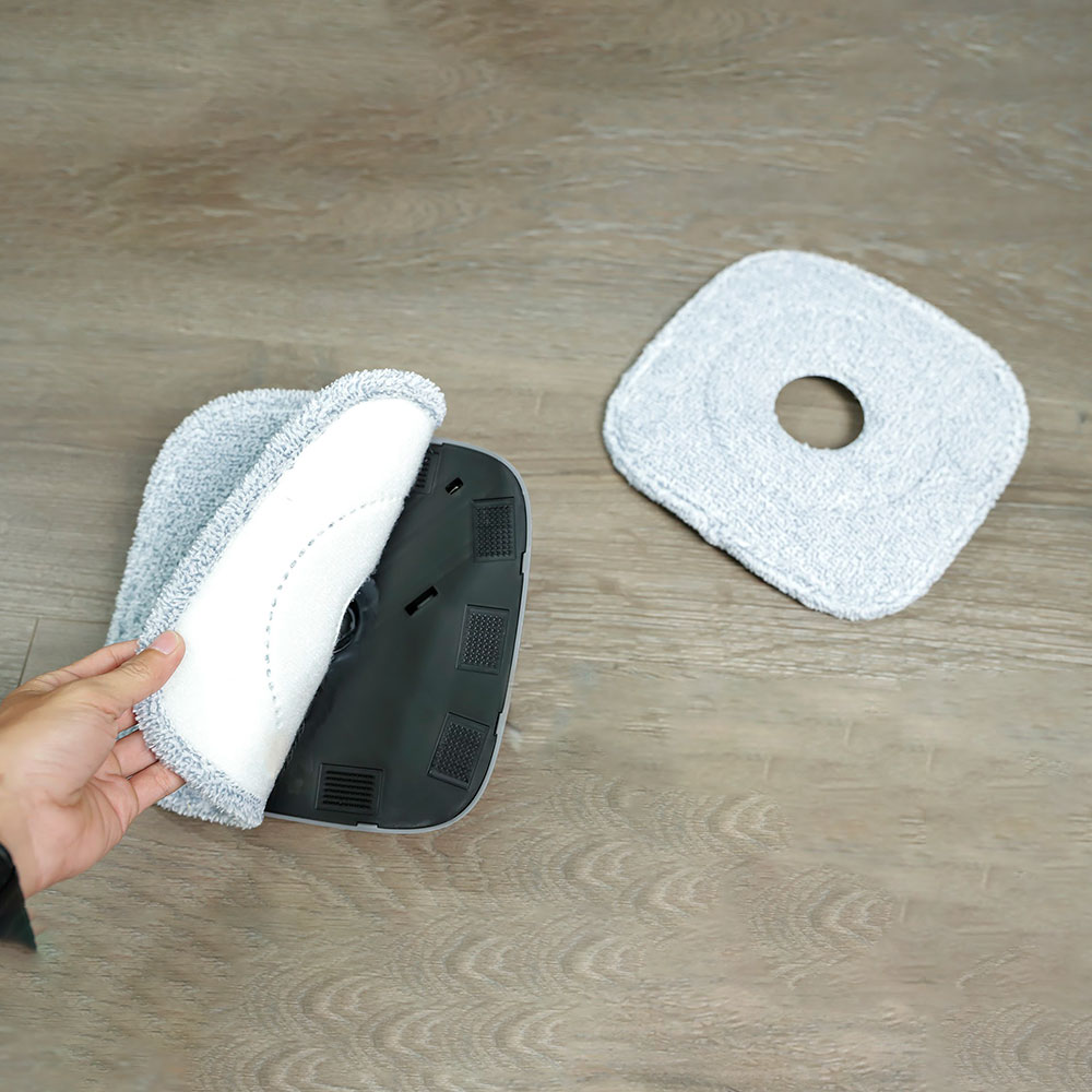 Khăn lau của cây lau nhà tự vắt Joybos được thiết kế dạng hình vuông 22 x 22cm, khối lượng 450g với kết cấu là những sợi vải bông nano dày. Chất liệu này cho khả năng thấm hút cực tốt, có thể được sử dụng để lau khô hay lau ướt đều cho hiệu quả làm sạch cao. Cụ thể, người dùng có thể lau khăn khô khi cần thấm hút nước và hút dầu, lau khăn ướt khi cần hút bụi và tóc trên sàn.