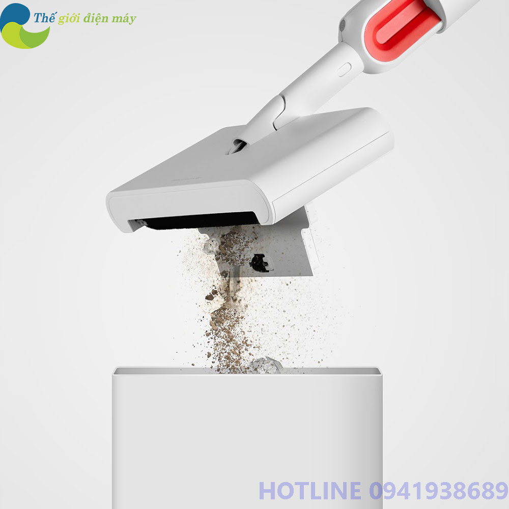 Cụ thể với chức năng hút bụi thì Cây chổi quét nhà, lau sàn Xiaomi Deerma DEM TB900 được trang bị 2 bánh xe kết nối với con lăn cơ khí và được gắn thêm bàn chải lông mềm. Khi đẩy về phía trước, con lăn sẽ xoay và bàn chải sẽ tự động quét bụi, rác vào bên trong hộp đựng. Chiếc hộp này có dung tích 230ml khá lớn, do đó bạn cũng không cần phải dọn sạch nó thường xuyên.