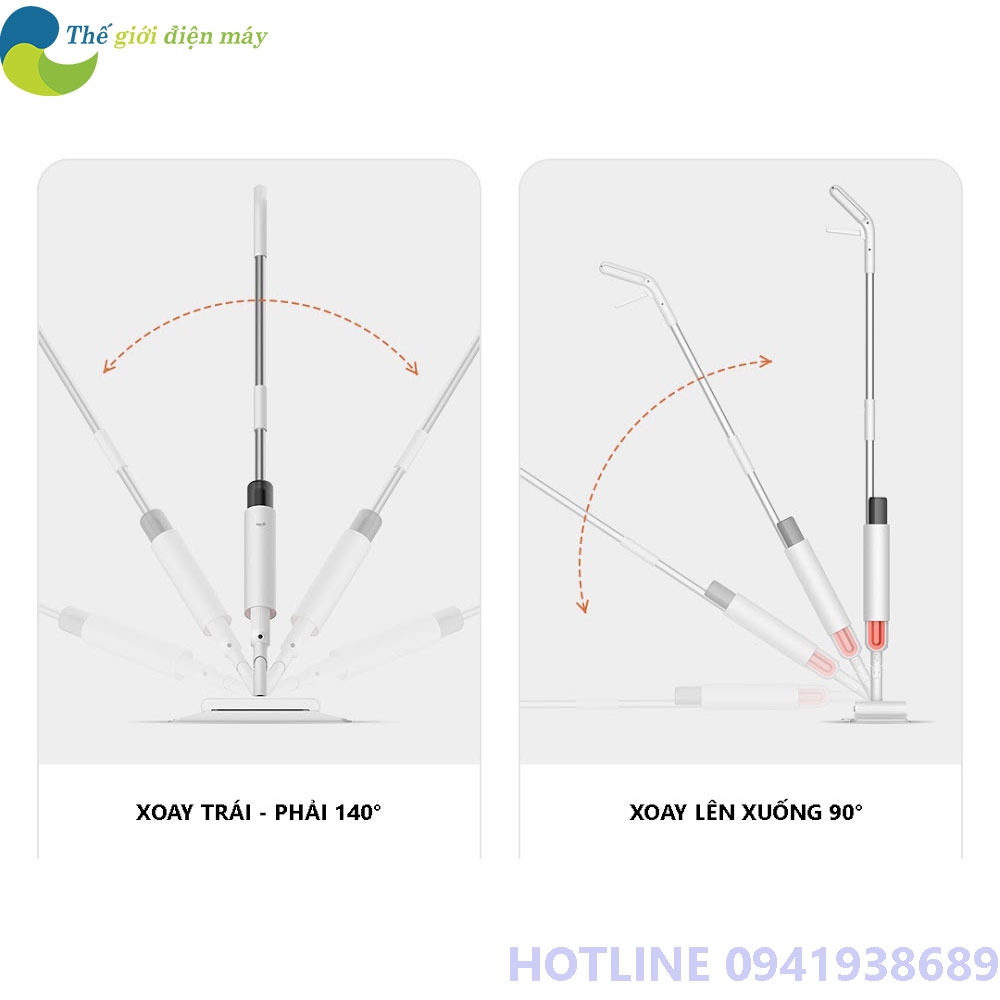 Cây chổi quét nhà, lau sàn Xiaomi Deerma DEM TB900 sở hữu kết cấu gọn nhẹ với kích thước chỉ 375 x 172 x 1309mm giúp bạn có thể lưu trữ ở bất kì không gian nào trong ngôi nhà của mình. Bên cạnh đó, sản phẩm có thiết kế cầm tay khá vừa vặn, công tắc cũng được bố trí hợp lý nhằm hỗ trợ người dùng có thể thao tác và sử dụng một cách dễ dàng nhất. Ngoài ra, với thiết kế linh hoạt có thể xoay qua trái - phải 140° và xoay lên xuống 90° thì Deerma DEM-TB900 có thể dọn dẹp sạch sẽ bụi bẩn ở mọi ngóc ngách một cách dễ dàng, ngay cả dưới gầm bàn, gầm giường hay kể cả gầm tủ…