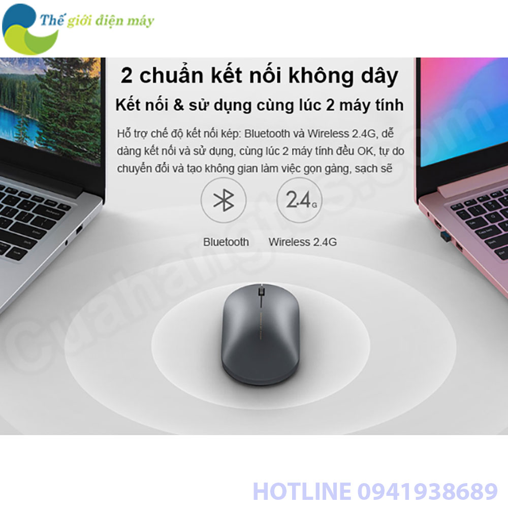 Bên cạnh đó Chuột không dây bluetooth Xiaomi Fashion Mouse còn hỗ trợ kết nối bluetooth, giúp người dùng dễ dàng kết nối 2 máy tính chỉ với 1 con chuột, cho phép người dùng tự do chuyển đổi để tạo không gian làm việc chuyên nghiệp và gọn gàng hơn. Chuột Xiaomi được cung cấp năng lượng bởi 1 viên pin số 5 và có thể dễ dàng thay pin bằng cách mở nắp. Thời lượng dùng ở chế độ 2.4G là 1 năm và ở chế độ bluetooth là 9 tháng.