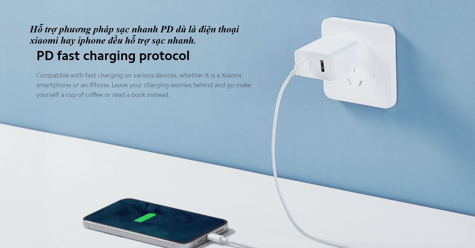 cốc sạc nhanh 33W Xiaomi AD332EU hỗ trợ sạc nhanh PD cho các thiết bị như iphone, ipad của apple.
