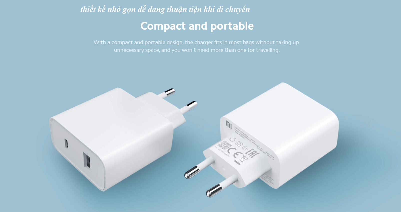 cốc sạc nhanh 33W Xiaomi AD332EU có công suất lớn tới 33W nhưng có thiết kế nhỏ gọn vừa lòng bàn tay, dễ dàng mang đi mọi nơi.