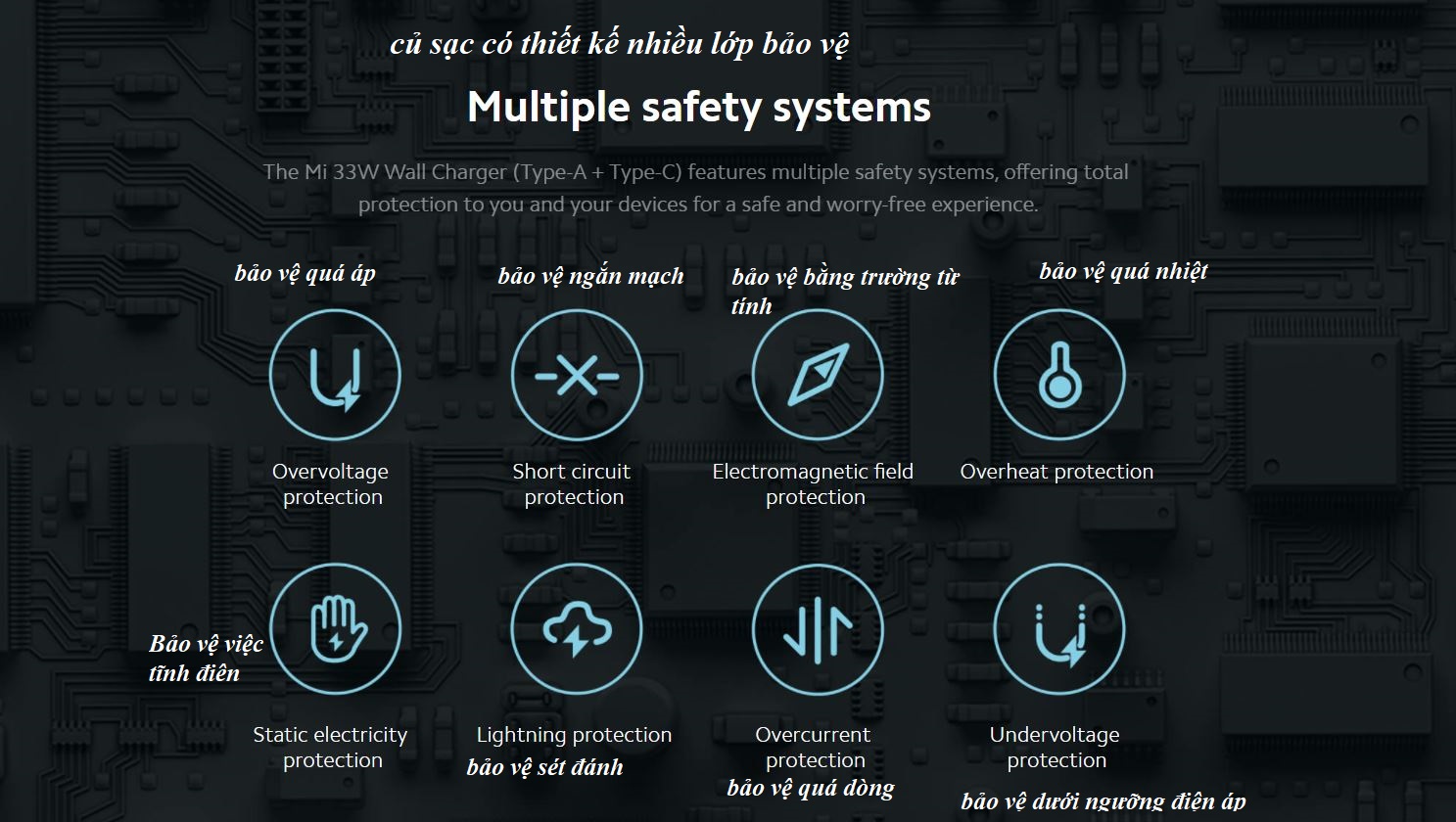 cốc sạc nhanh 33W Xiaomi AD332EU có nhiều công nghệ tiên tiến bảo vệ thiết bị 1 cách an toàn nhất.