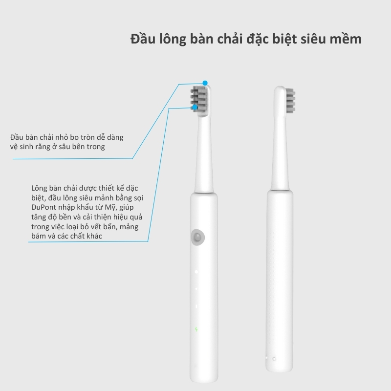 Đầu bàn chải được bo tròn mềm mại, không gây tổn thương nướu và má, đặc biệt ở các vị trí sâu bên trong. Lông bàn chải làm từ sợi Dupont nhập khẩu từ Mỹ, siêu mảnh chỉ 0.02mm, dễ dàng len sâu vào kẽ răng để làm sạch triệt để.