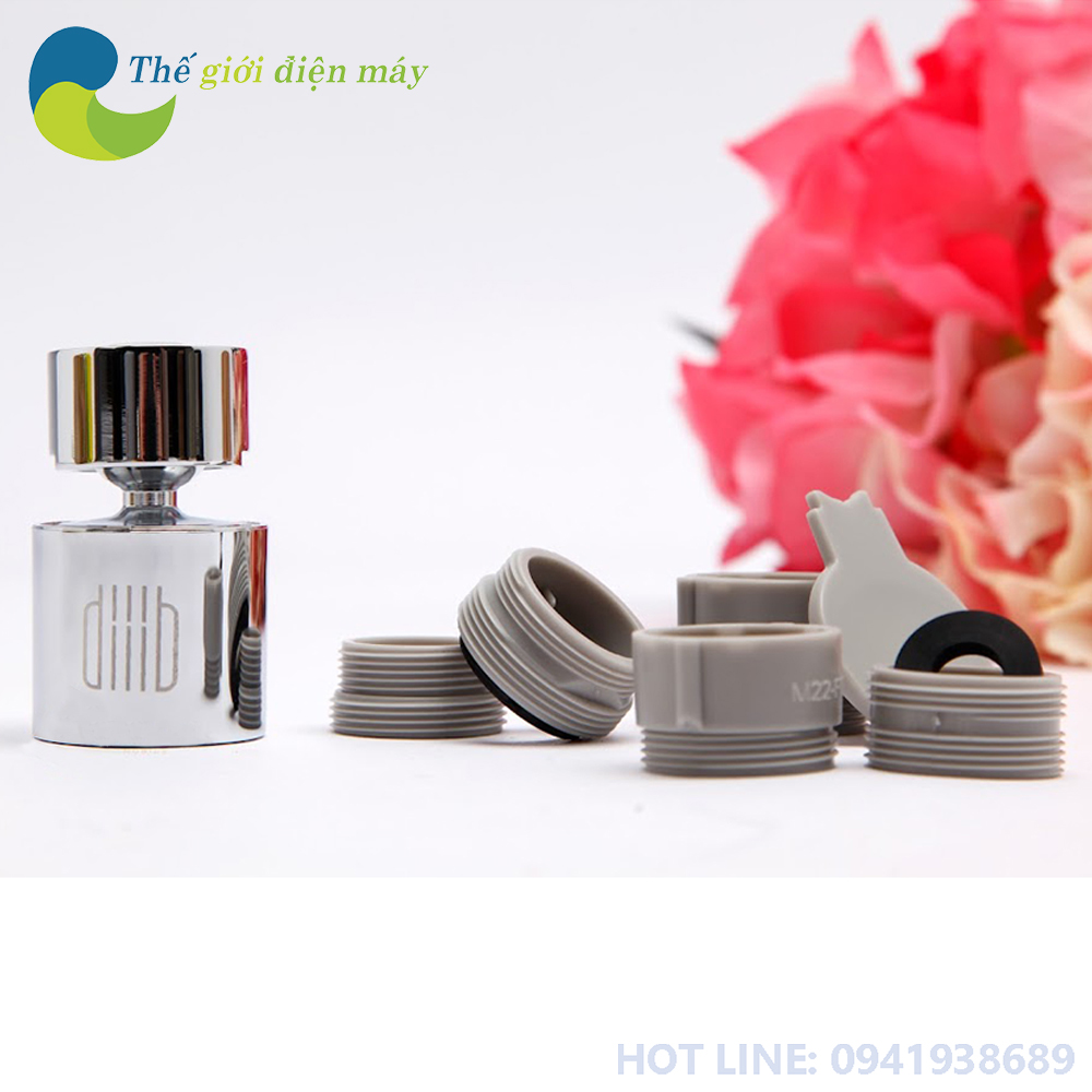 Đầy vòi tăng áp DiiiB được tích hợp trục chuyển đổi với kích thước khá nhỏ chỉ 24mm, nhưng cho khả năng điều chỉnh góc nước 360º theo mọi hướng, tăng phạm vi làm sạch, dễ dàng rửa và làm sạch vật dụng lớn như chảo, nồi,... Đầu vòi cố định, nước chảy nhanh cùng khả xoay góc rộng giúp quá trình rửa chén và sử dụng nước của bạn nhanh chóng và đơn giản hơn.