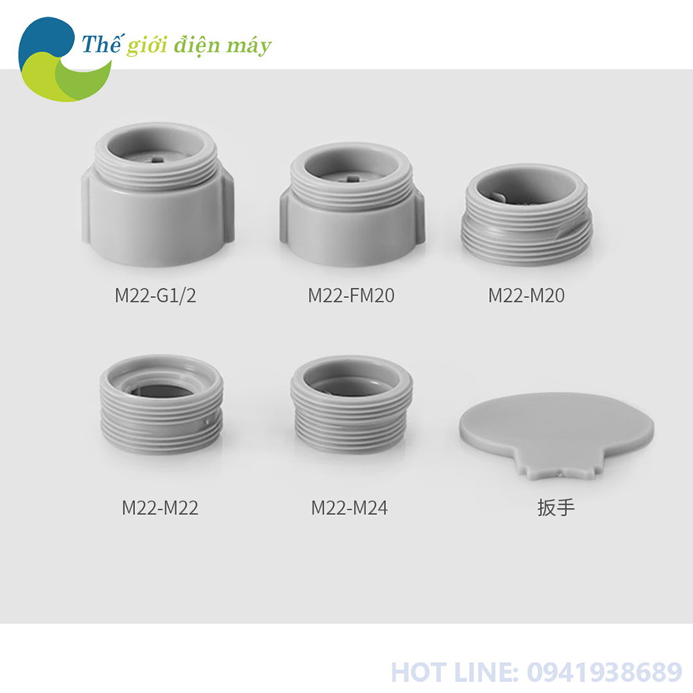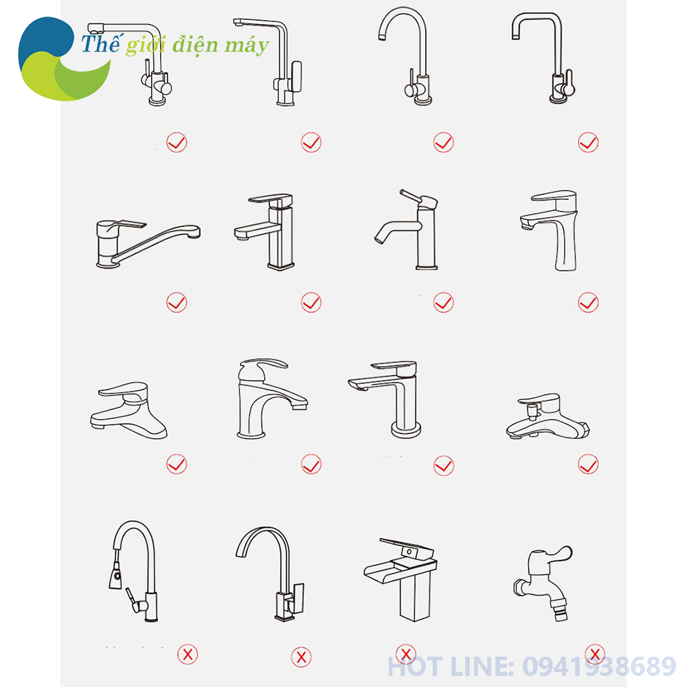 Đầu vòi tăng áp DiiiB sở hữu kích thước nhỏ gọn 46.8 x 28 x 28mm, dễ dàng cầm nắm trong lòng tay. Sở hữu kích thước nhỏ gọn nên khi tích hợp vào vòi vẫn tiết kiệm diện tích. Ngoài ra với thiết kế thông minh cùng khả năng tương thích cao, đầu vòi có thể được tích hợp với nhiều loại vòi nước khác nhau. Bên cạnh đó phương pháp lắp đặt cũng khá đơn giản, không cần tháo rời thân chính, giúp người dùng nhanh chóng sử dụng. Tham kháo các loại vòi thích ứng ở hình dưới đây.