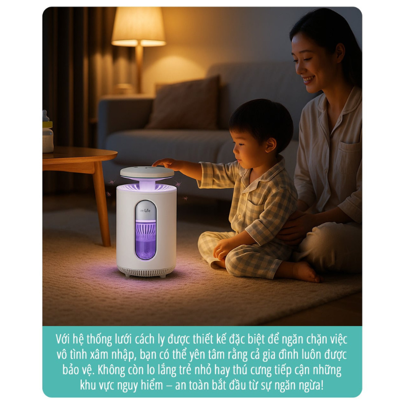 Bạn đang tìm kiếm một giải pháp xua đuổi và tiêu diệt muỗi hiệu quả nhất thì Đèn Diệt Muỗi miLife K5P với thiết kế đặc biệt giúp diệt muỗi. Đèn thu hút muỗi bằng ánh sáng tím, và tiêu diệt muỗi hiệu quả, khép kín theo một cơ chế thông minh dựa vào việc định vị mục tiêu của muỗi. Ánh sáng tím giúp thu hút muỗi, bên trong đèn có những cánh thu hút muỗi hoặc côn trùng xuống phía lưới xung điện bên dưới. Bên dưới có lớp lưới ngăn muỗi hoặc côn trùng bay ngược ra ngoài do đó, đèn có thể bắt muỗi trong phạm vi diện tích rộng, giúp đảm bảo sức khỏe cho mọi thành viên trong gia đình bạn.