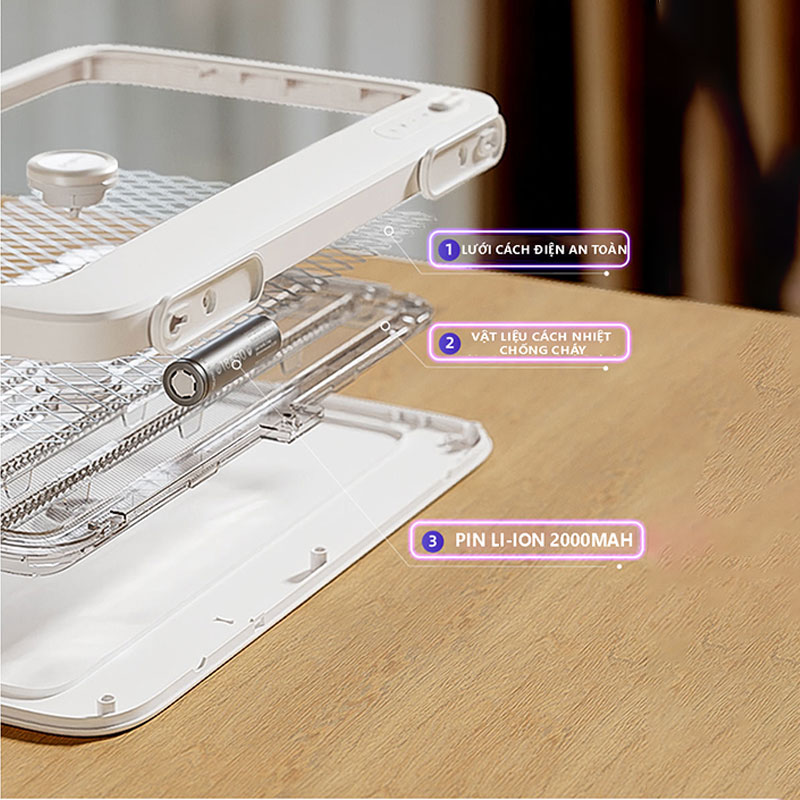 Xiaomi ZSC242115 được chế tạo tỉ mỉ với bề mặt lưới mã hóa hình kim cương chéo kết hợp cùng lưới sắt kẽm mật độ cao 2x2mm. Cấu trúc này giúp tăng độ bền cùng khả năng chống gỉ sét, đảm bảo ngăn chặn cả những loại côn trùng nhỏ nhất. Xét về tính an toàn, đèn được chế tạo từ vật liệu ABS chống cháy, trang bị thêm lưới cách điện, mang đến sự an tâm tuyệt đối cho người dùng. Thêm vào đó, tay cầm silicon di động được thiết kế tinh tế, giúp bạn dễ dàng mang theo, sử dụng đèn ở mọi không gian như phòng ngủ, phòng ăn, nơi làm việc hay khi đi dã ngoại.