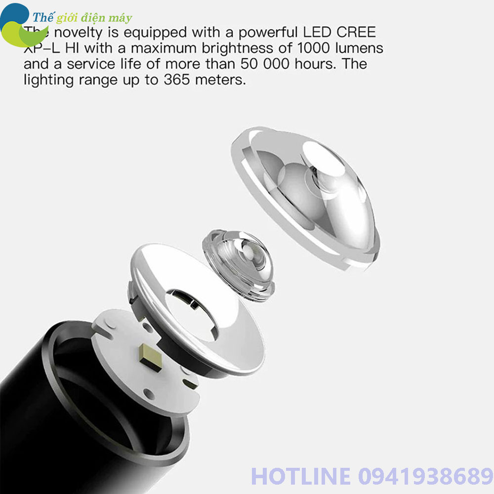 Đèn chỉ sử dụng 1 bóng LED duy nhất, nhưng là loại chip LED CREE XPL HI siêu sáng. Đèn cho độ sáng lên đến 1000 lumens, có thể chiếu xa đến 365m và tuổi thọ có thể lên đến 50.000 giờ.