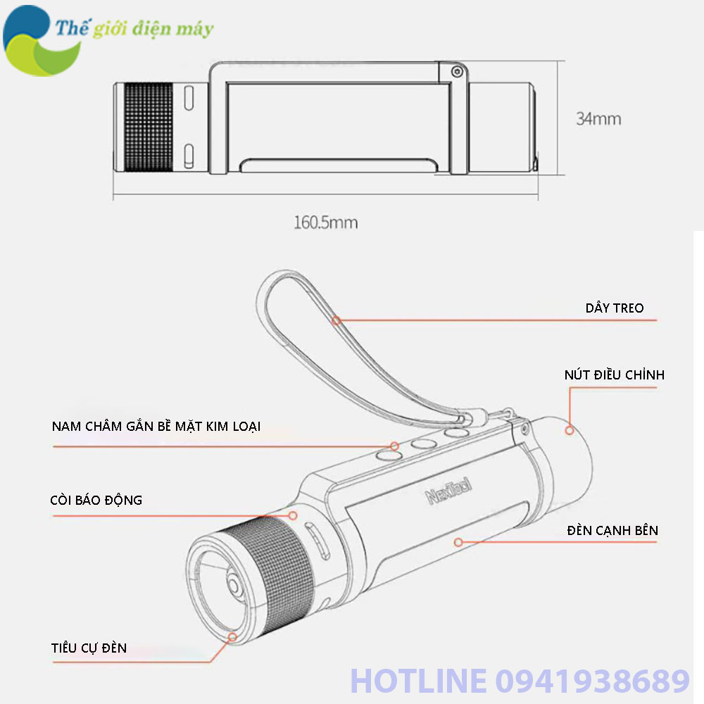 Chính vì là một chiếc đèn pin ngoài trời mà thiết bị được đặc biệt thiết kế khá di động với kết cấu cầm tay linh hoạt. Cụ thể với kích thước 34mm x 160.5mm thì bạn có thể dễ dàng bỏ túi, balo hoặc gắn trực tiếp trên xe trong các chuyến đi. Ngoài ra, đèn còn tích hợp thiết kế có thể xoay 360 độ dễ dàng giúp người dùng có thể linh hoạt điều chỉnh góc của ánh sáng cạnh bên, đáp ứng tốt cho mọi hoàn cảnh chiếu sáng.