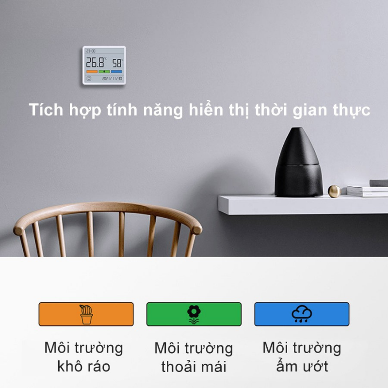 Đồng hồ đo nhiệt độ và độ ẩm Duka Atuman TH1 không chỉ giúp bạn theo dõi nhiệt độ và độ ẩm mà còn tích hợp chức năng hiển thị thời gian thực. Thiết bị này hiển thị cả ngày tháng năm, giúp bạn theo dõi một cách bao quát mà không bỏ lỡ những khoảnh khắc quan trọng trong cuộc sống.