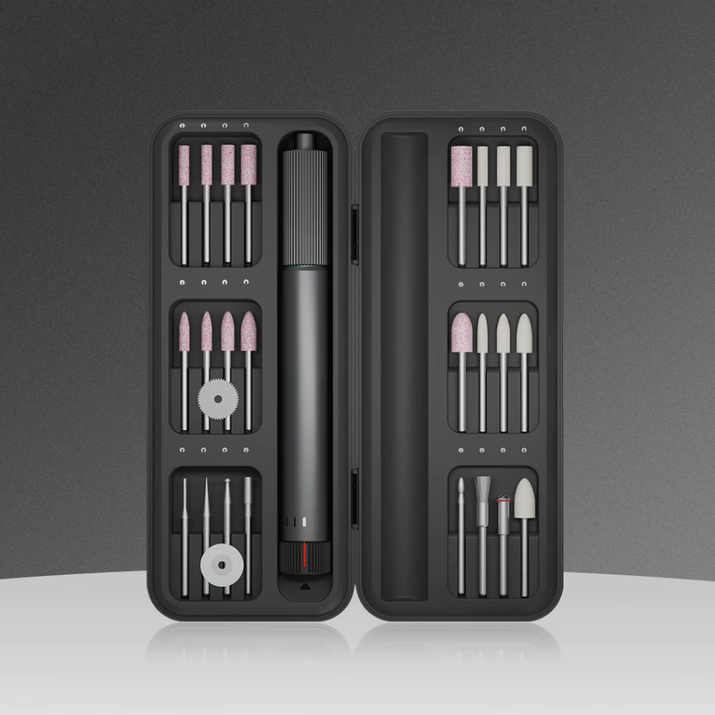 Đi kèm với thân máy là hộp đựng từ tính gọn gàng chứa tới 24 loại đầu mũi khác nhau, đáp ứng mọi nhu cầu từ cơ bản đến nâng cao: