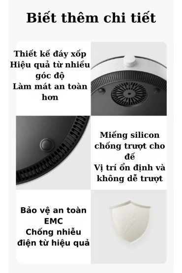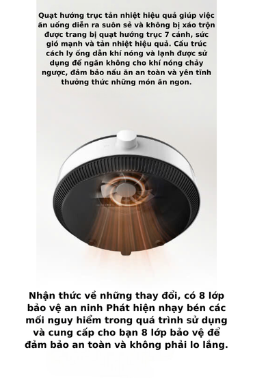 Bếp từ Xiaomi N1 được trang bị quạt tản nhiệt dưới đáy bếp với thiết kế 7 cánh cho công suất gió mạnh hỗ trợ tản nhiệt hiệu quả tức thì. Với cấu trúc cách ly ống dẫn khí nóng và lạnh được sử dụng để ngăn không cho khí nóng chảy ngược, đảm bảo cho việc nấu ăn an toàn và yên tĩnh, đem lại hiệu quả nấu nướng tốt nhất cho bạn