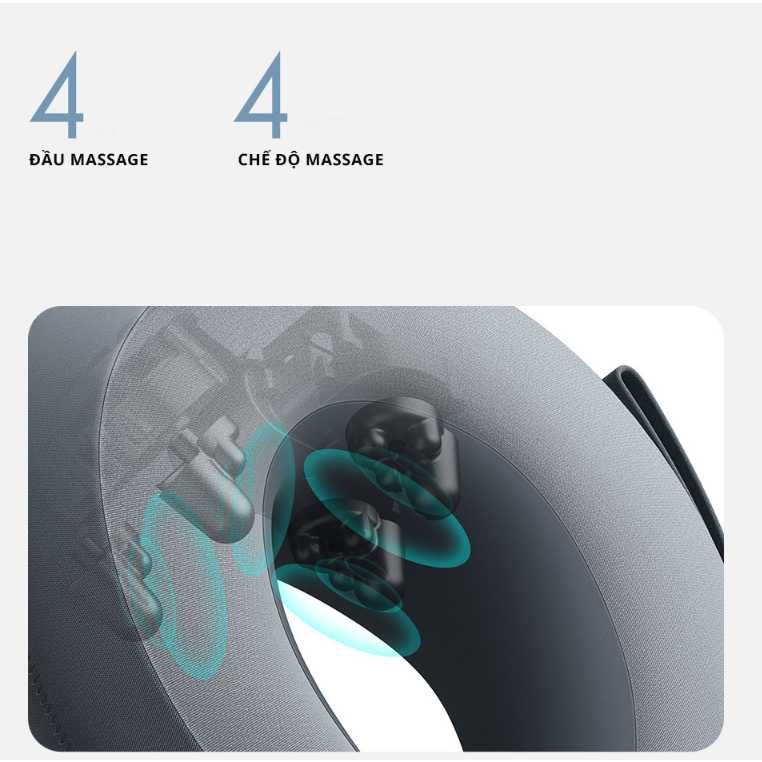 Gối massage cổ vai gáy Xiaomi sử dụng 4 đầu massage được bố trí theo hình thang, không chỉ ôm sát vùng cổ mà còn hỗ trợ thư giãn vai gáy, mang đến cho người dùng cảm giác massage dễ chịu tương tự như khi đang xoa bóp bằng tay. Các đầu massage sẽ di chuyển trái, phải, xoay vòng qua lại để tạo thành hệ thống massage đa hướng 360°, tăng hiệu quả giảm đau cho toàn bộ vùng cổ, vai gáy.