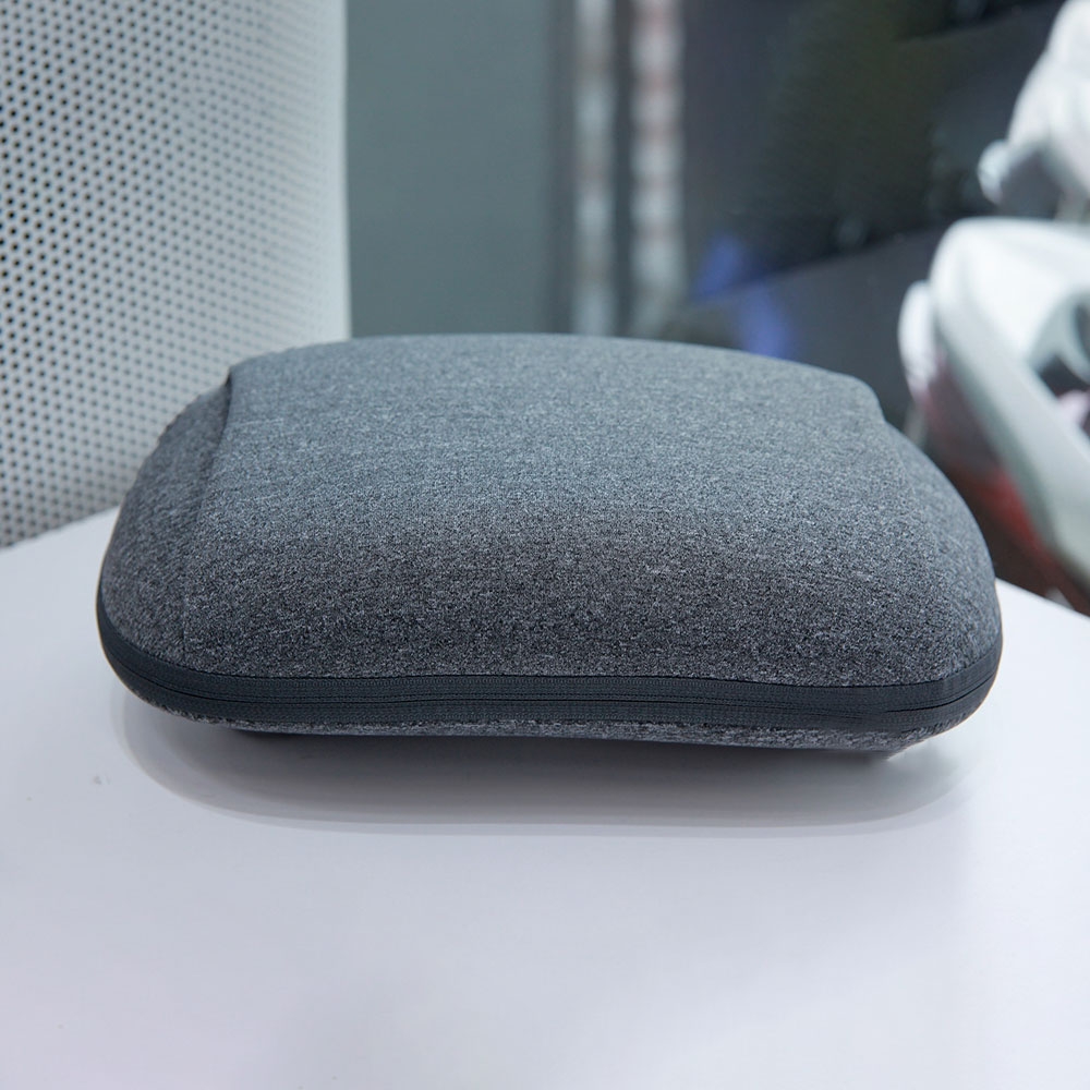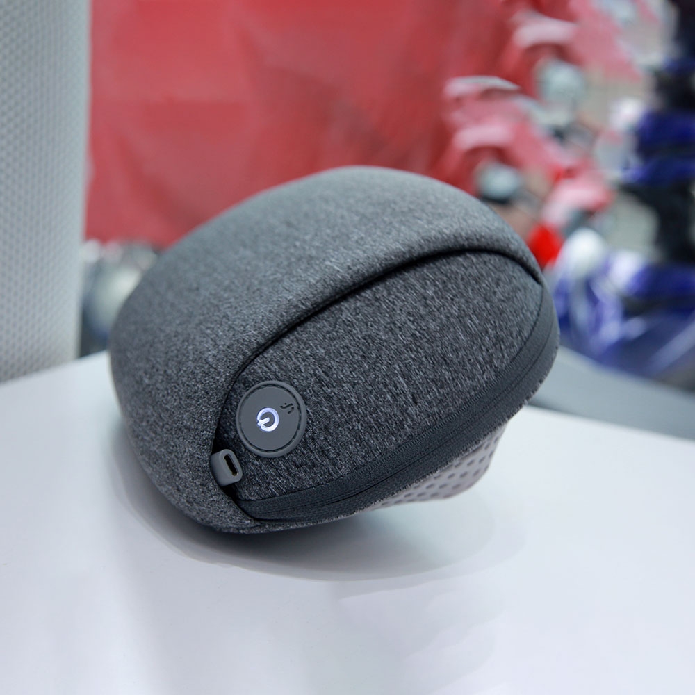 Với chiếc gối massage nhiệt lần này, nhà sản xuất sử dụng chất liệu vải thun siêu mềm mại để giúp người dùng cảm thấy thoải mái nhất. Gối với thiết kế 2 túi thông nhau ở 2 bên sẽ cho phép bạn đặt tay vào và cố định gối ở những vị trí cần massage. Ở một góc của gối là một nút nguồn kết hợp chức năng chuyển đổi chế độ có kích thước khá lớn để bạn dễ dàng thao tác. Gần với nút nguồn là một cổng sạc tròn hoặc Type-C cho phép bạn kết nối cáp với gối để sạc khi pin hết.