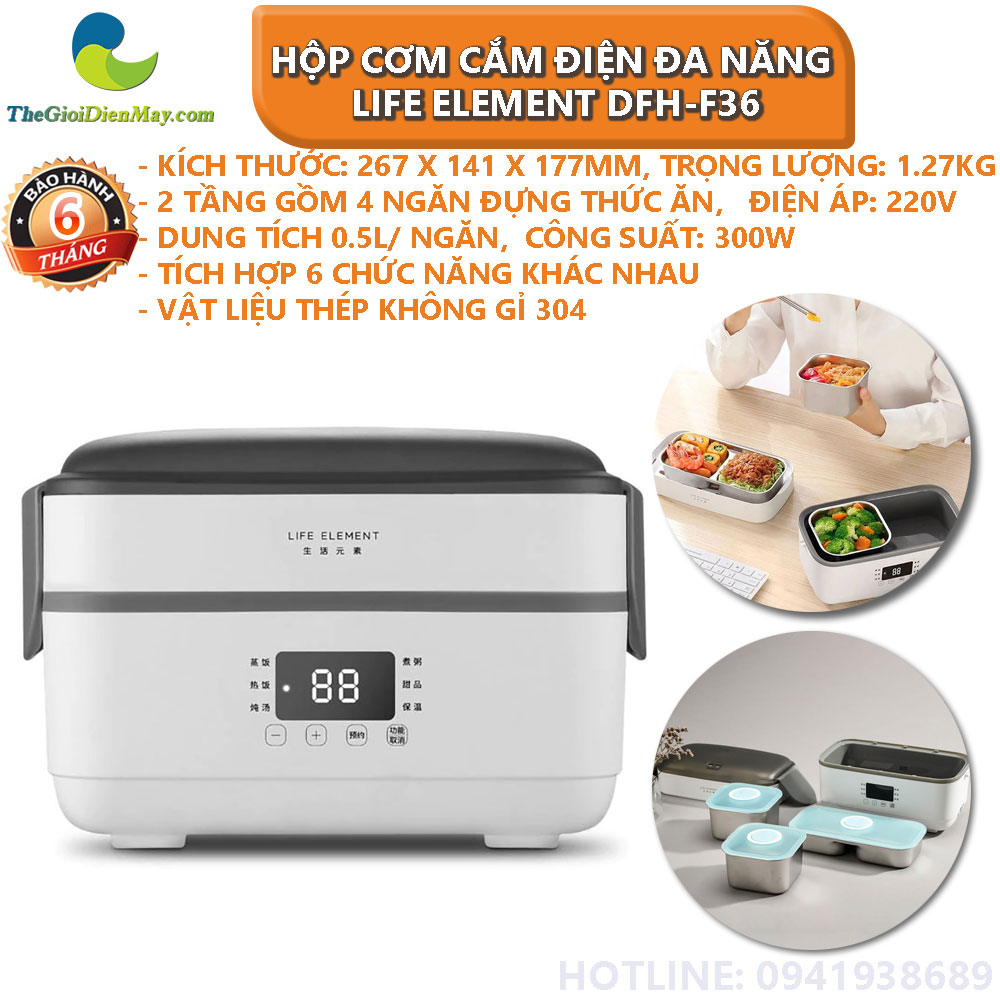 Điểm độc đáo của Hộp cơm cắm điện đa năng Life Element DFH-F36 đó là tích hợp 6 chức năng của lò vi sóng, nồi hầm điện, hộp bento, nồi hầm soup, nồi cơm điện và bếp mini di động. Vì vậy Life Element DFH-F36 ngoài khả năng lưu trữ, còn có thể hầm, om, hấp,... với nhiều loại thực phẩm khác nhau như nấu cơm, hầm thịt, hâm nóng thức ăn, nấu cháo, làm món tráng miệng,... giúp người dùng dễ dàng thưởng thức món ngon ngay cả khi ở văn phòng làm việc.