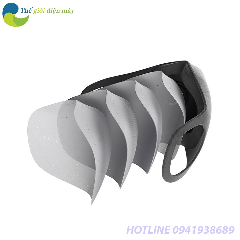 Bên cạnh đó tiêu chuẩn lọc KN95 với thiết kế 5 lớp lọc của chiếc khẩu trang này, đảm bảo khẩu trang lọc sạch không khí cùng các loại hạt có kích thước chỉ 2.5 micro mét. Nhờ đó, hiệu quả sạc của khẩu trang lên đến 97% bảo vệ gần như tuyệt đối cho người dùng khỏi những tác nhân gây hại từ môi trường.